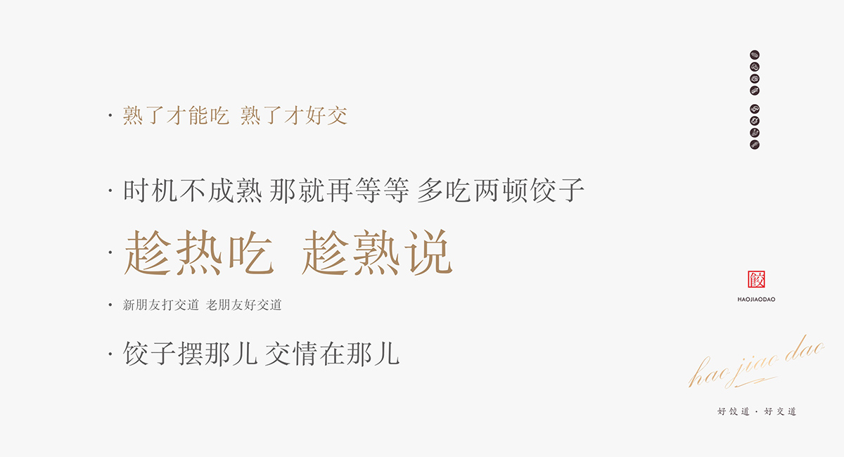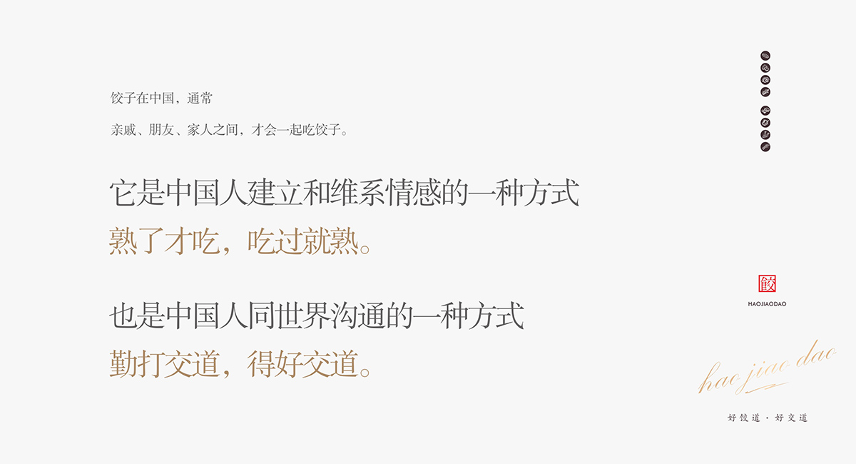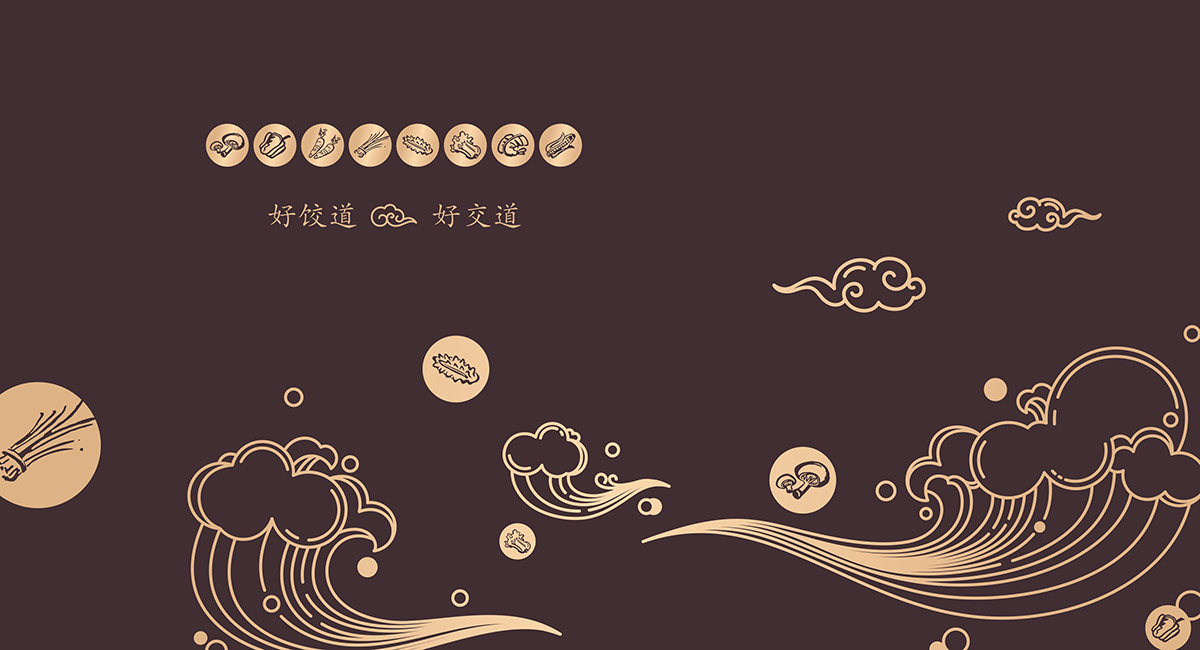 甲方公司有把水餃推往世界的豪邁!所以,在視覺和空間設計上我們突出人文情懷的同時,更多的展現出品牌時尚國際范的高度。使得品牌極具個性,又不失中國味道。