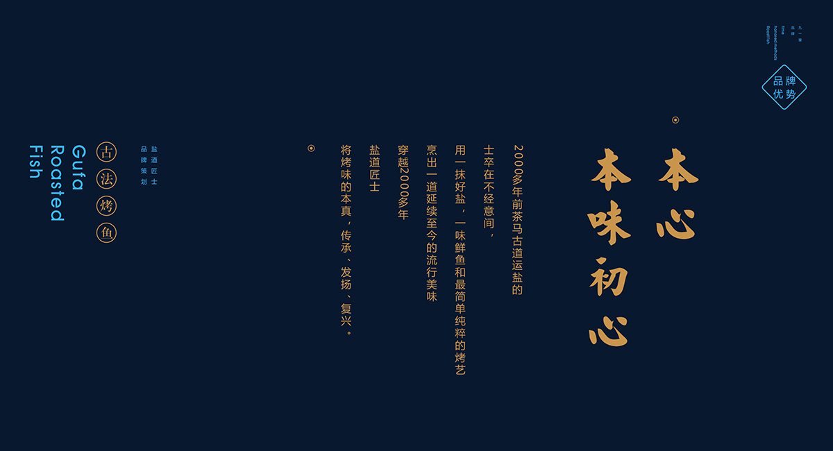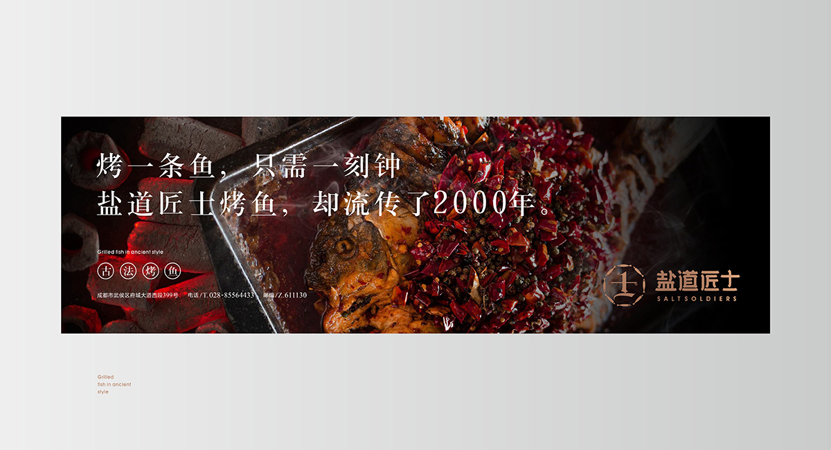 古法烤魚,2000年前的茶馬古道運鹽士卒在不經意間,用一抹好鹽,一味鮮魚和最簡單最單純的、最純粹的烤魚手藝烹飪出一道延續千年的時尚流行美味。穿越時代的長河,鹽道匠士將烤魚的本真、傳承、發揚和復興融于一身。訴說大道至簡的道理,去繁化簡,去偽存真,讓大眾領略到一道天然的烤魚本味原香。
