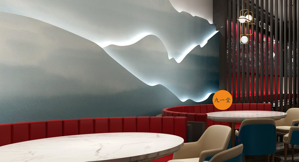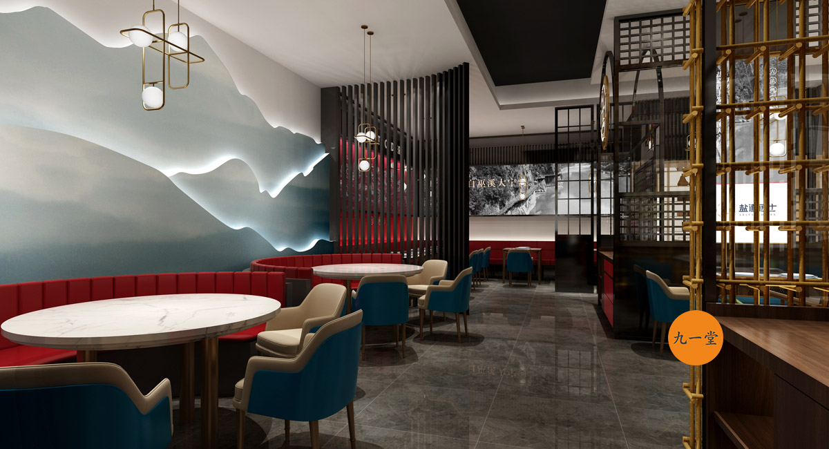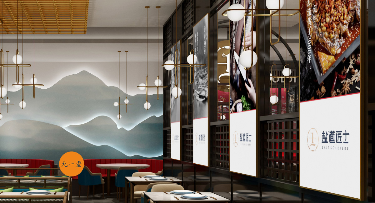 設計來源重慶巫溪大運河的設計理念,巧妙的運用在門頭。空間里突出品牌時尚感的同時不忘烤魚的歷史傳承,仿佛一味千年的烤魚訴說著時代的興衰存亡。