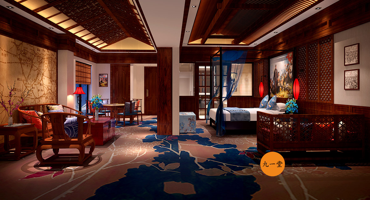 中式酒店的主題設(shè)計(jì)給人的第一印象是它具有濃厚的東方文化和地域特色。特別是以共同主題的酒店裝飾設(shè)計(jì)風(fēng)格主要分為古典中文和新中文。新的中式風(fēng)格不同于傳統(tǒng)的復(fù)古模式,它與時(shí)代相結(jié)合,空間采用簡單而硬的直線,體現(xiàn)了追求簡約生活的現(xiàn)代人的理念。例如,這套設(shè)計(jì)源于九一堂品牌設(shè)計(jì)的真實(shí)案例,突出了酒店的中國文化。雖然它是一種新的中國風(fēng)格,但它看起來也像是一種偉大的感覺。你沉浸其中并感到驚訝。